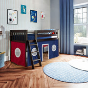 Jackpot Deluxe York Twin Play Loft with Red/Blue/White Curtain