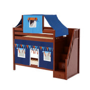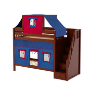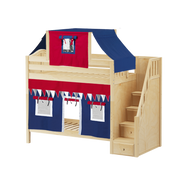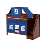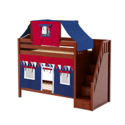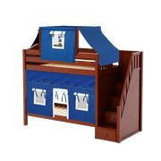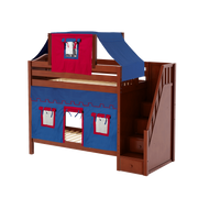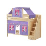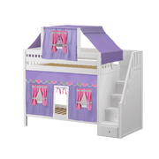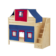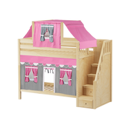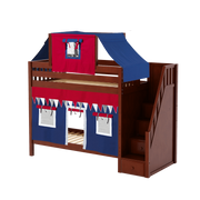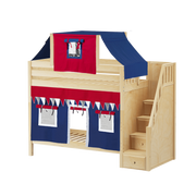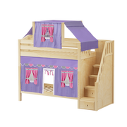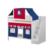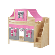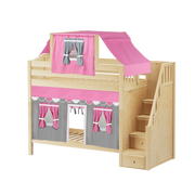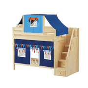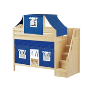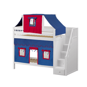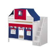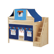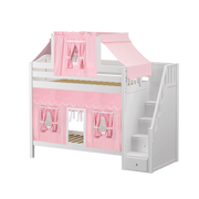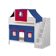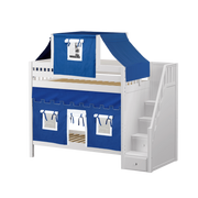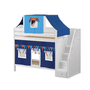 Maxtrix Twin High Bunk Bed with Stairs, Curtain + Top Tent