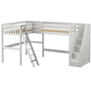 Maxtrix Twin High Corner Loft Bed with Ladder + Stairs - R