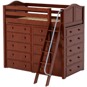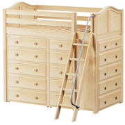 Our classic high loft bed with angled ladder becomes the ultimate storage cube! Raised bed = space underneath. Fill with matching case goods based on your needs. Dressers + bookcases are designed to fit perfectly. Each piece is freestanding so you can use separately for years to come.