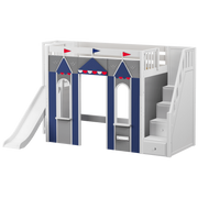Maxtrix Twin High Loft Bed with Stairs, Slide Platform + Playhouse Panels