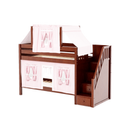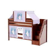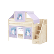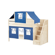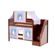 Maxtrix Twin Low Bunk Bed with Stairs, Curtain + Top Tent