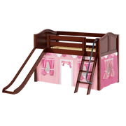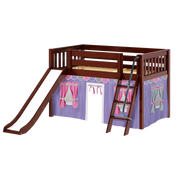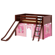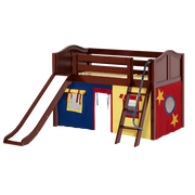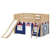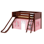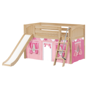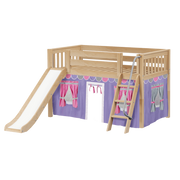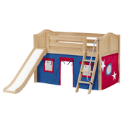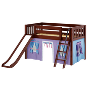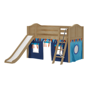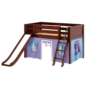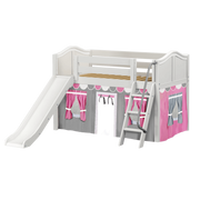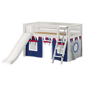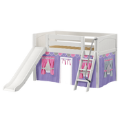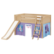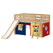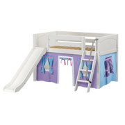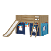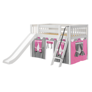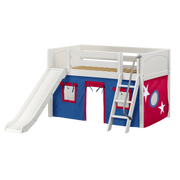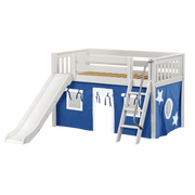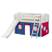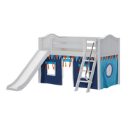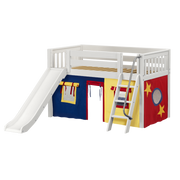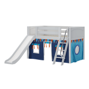 Maxtrix Twin Low Loft Bed with Angled Ladder, Curtain + Slide