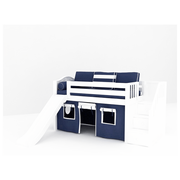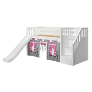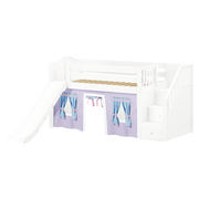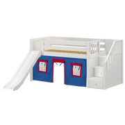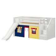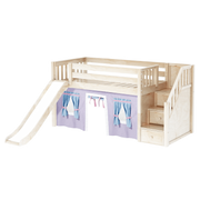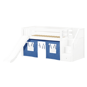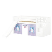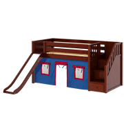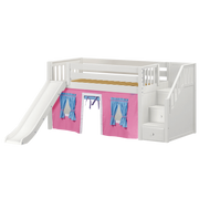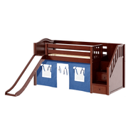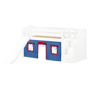 Maxtrix Twin Low Loft Bed with Stairs, Curtain + Slide