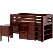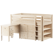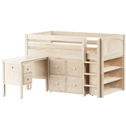 Our classic low loft bed with straight ladder becomes the ultimate storage + study cube! Create your ideal combination of matching case goods, all designed to fit perfectly. Desk pulls out easily when its time for homework then slides back underneath. Each piece is freestanding so you can also use separately.