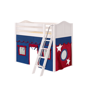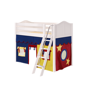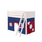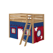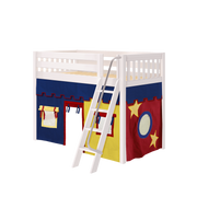 Maxtrix Twin Mid Loft Bed with Angled Ladder + Curtain