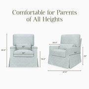 - DESIGNED FOR COMFORT: Lay back and relax in this plush and cozy seat, complete with an added lumbar pillow for extra comfort. Whether you are feeding baby or rocking baby to sleep, our metal base allows for a smooth and gentle 360 degree swivel motion as well as forward and backward gliding.
