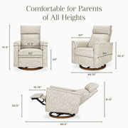 With thoughtful details and clean lines, the Willa Plus Power Glider Recliner w/ Power Headrest combines modern design with traditional comfort. Its pillow lined arms, smooth glide, and power recline + power headrest create the most comfortable and luxurious resting spot for you and your baby.