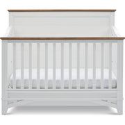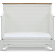 The heart of your nursery, the Artisan Convertible Crib combines clean lines with a farmhouse-inspired silhouette. Its elevated design includes a linen white finish with a warm oak cap rail, crafted from solid poplar hardwood for long-lasting durability. As your baby grows, this 4-in-1 crib effortlessly converts into a toddler bed, daybed, and a stylish full-size platform bed using the available conversion kit.