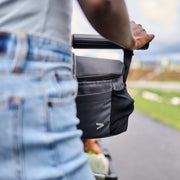 Veer's Parent Organizer is the one you need. Attaches securely to any Cruiser, Switchback Seat, and the &Roll and &Jog frames to provide storage for keeping essentials accessible and secure. It stores infant bottles, sippy cups, wipes, diapers, phones, keys, or whatever else you may need to keep handy.